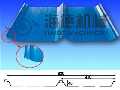 該系列成型機生產的壓型板解決了常規系列壓型板的屋面滲漏問題,壓型板的連接打破了傳統屋面用螺栓連接的慣例,安裝方法采用45度鎖口咬合安裝,使屋面防水效果更加完好。