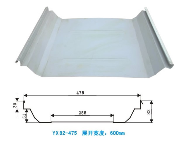 經輥軋成型的單層壓型板屬咬合式屋面板具有波峰高、 強度大 、無螺釘鎖邊咬口安裝, 搭接安裝安全可靠, 防水抗臺防暴性能強等特點,