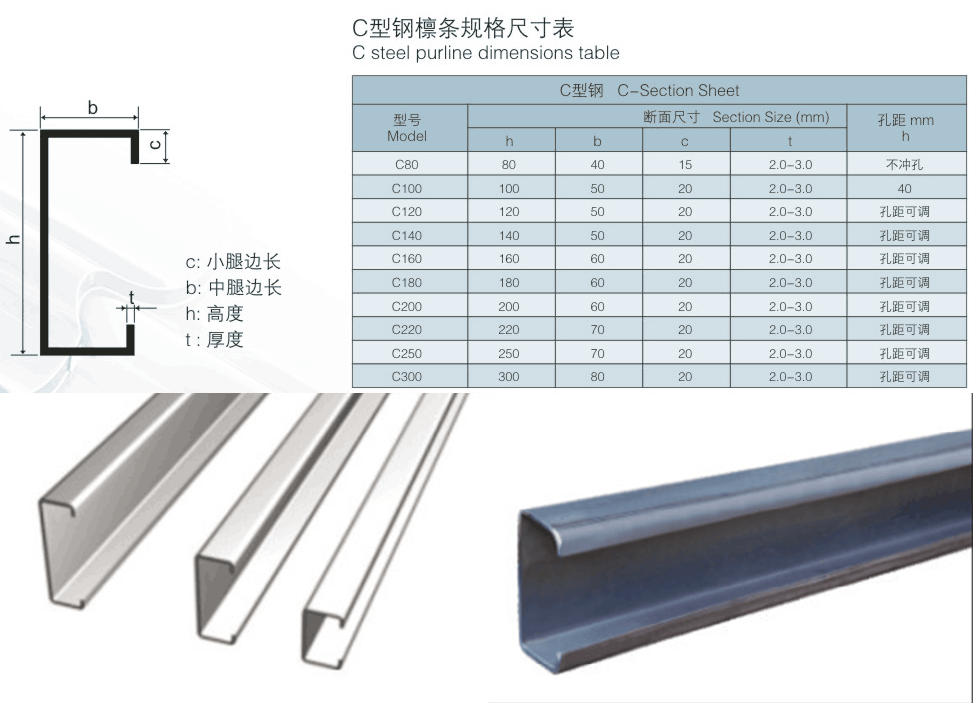 經(jīng)該機輥軋的C型檁條成品具有良好的抗彎抗壓性能,平直度好、全自動定長切割、自動沖孔、自動化程度高,安裝快捷方便。